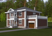 Проект "СБ - 0525" - хороший двухэтажный дом для постоянного проживания из силикатных блоков с балконом, с гаражом, с террасой. Площадь гаража 262.70 м2 с размерами 12 на 10.